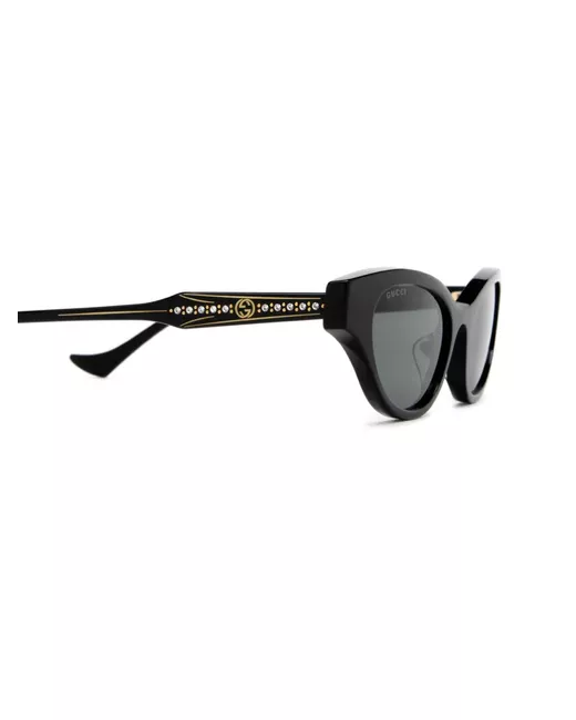 black acetate cat-eye frame tinted lenses straight arms curved tips signature Double G logo These glasses come with a protective case.