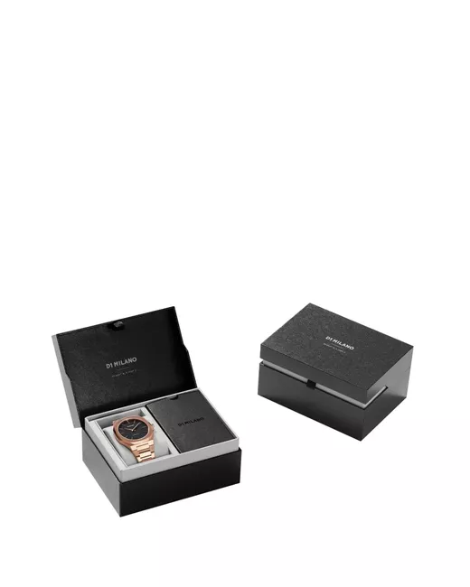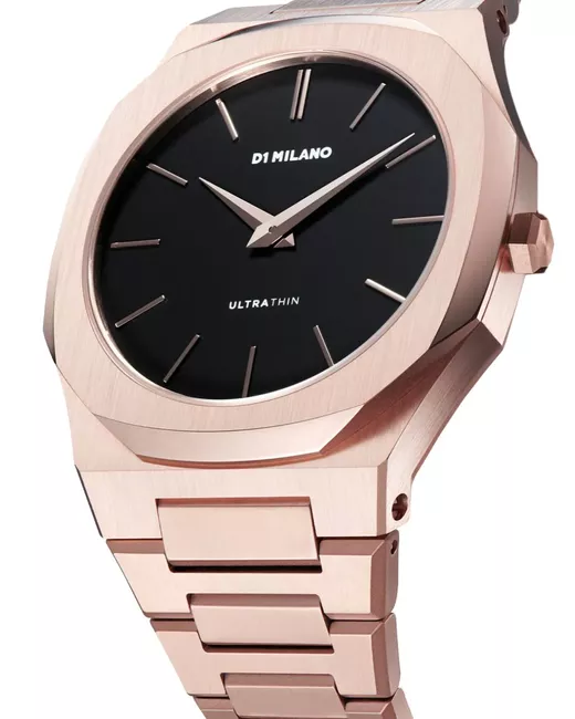 40mm black stainless steel index dial sword hands octagonal face logo-embossed crown stainless steel link bracelet butterfly clasp fastening quartz movement anti-reflective coating water resistance up to 50m/5 ATM Original box and papers included.