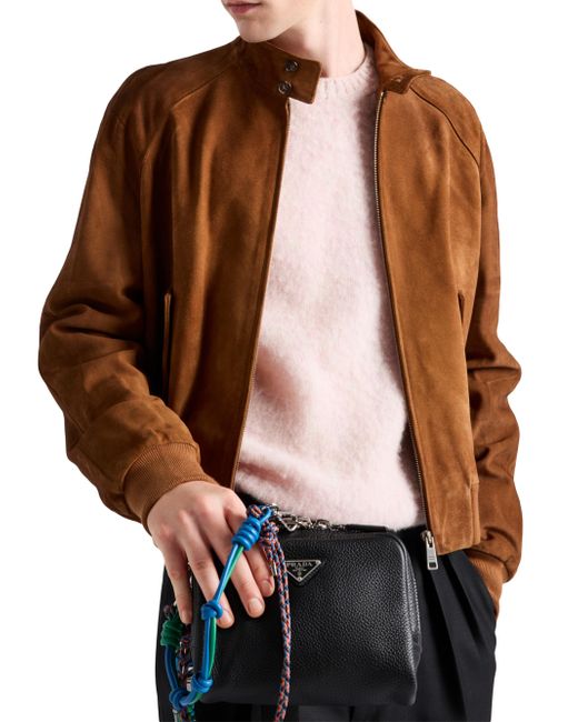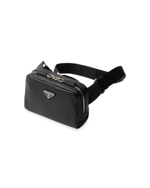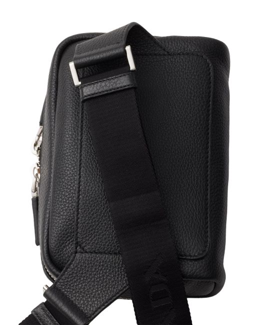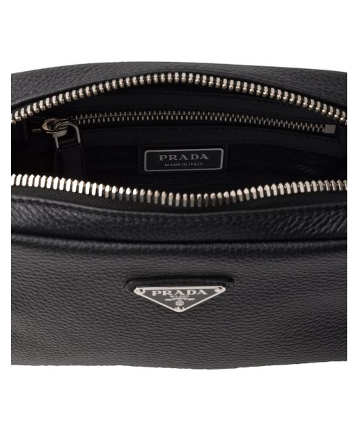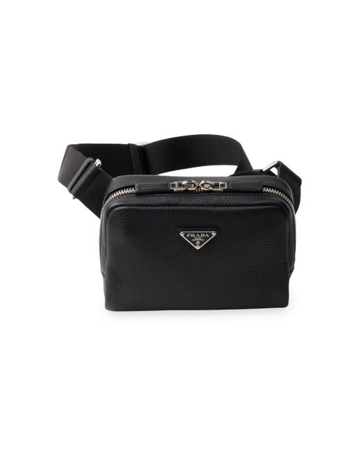 This leather shoulder bag with a structured silhouette and sleek lines is characterized by its compact design with zipper and is decorated with the iconic triangle logo. Adjustable leather shoulder strap. Maximum length 110 cm - Minimum length 60 cm Enameled metal triangle logo on the front Zipper closure Flat back pocket Interior with zipper pocket Logo-print Re-Nylon lining Imported 100% Calf Leather SIZE & FIT 19.5W x 13.5H x 6.0L (7.6'' x 5.3'' x 2.3''). Lsd Rtw - Prada Rtw > Prada > Saks Fifth Avenue > Barneys. Prada. Color: Black.
