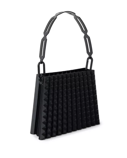 black satin finish 3D detailing detachable shoulder strap main compartment