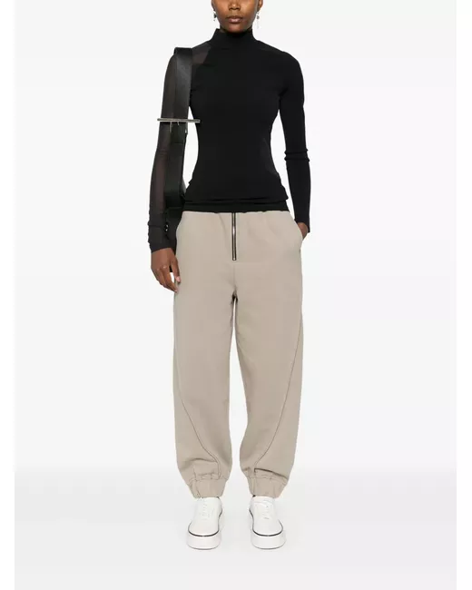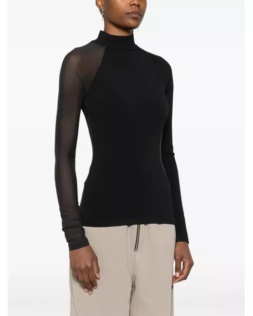 black recycled polyamide mesh detailing semi-sheer construction fine knit ribbed mock neck long sleeves straight hem