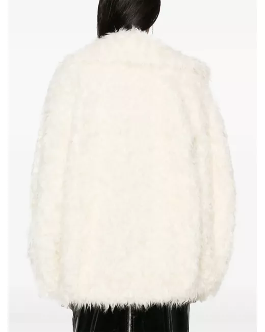 white faux-fur design front hook and eye fastening wide notch lapels long sleeves two side slit pockets logo-jacquard lining straight hem