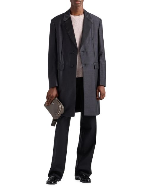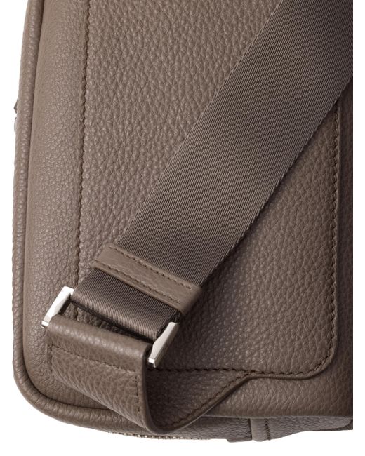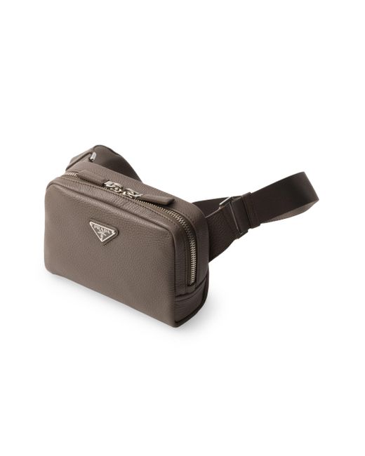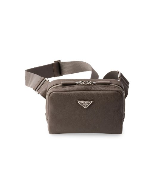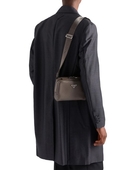 This leather shoulder bag with a structured silhouette and sleek lines is characterized by its compact design with zipper and is decorated with the iconic triangle logo. Adjustable leather shoulder strap. Maximum length 110 cm - Minimum length 60 cm Enameled metal triangle logo on the front Zipper closure Flat back pocket Interior with zipper pocket Logo-print Re-Nylon lining Imported 100% Calf Leather SIZE & FIT 19.5W x 13.5H x 6.0L (7.6'' x 5.3'' x 2.3''). Lsd Rtw - Prada Rtw > Prada > Saks Fifth Avenue > Barneys. Prada. Color: Grey.