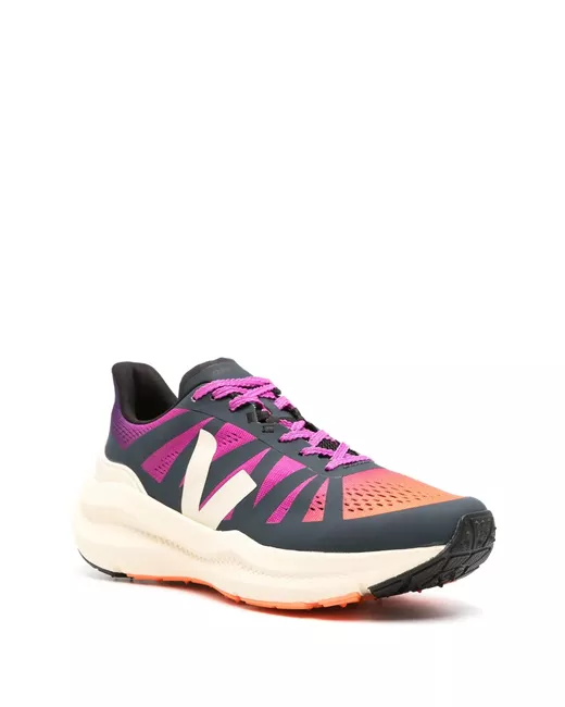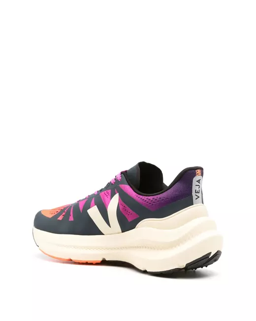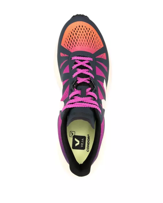 purple/orange/navy blue recycled polyester colour-block panelled design mesh panelling faux-leather trim front lace-up fastening branded heel counter logo-print tongue logo stamp at side branded insole full lining chunky rubber sole