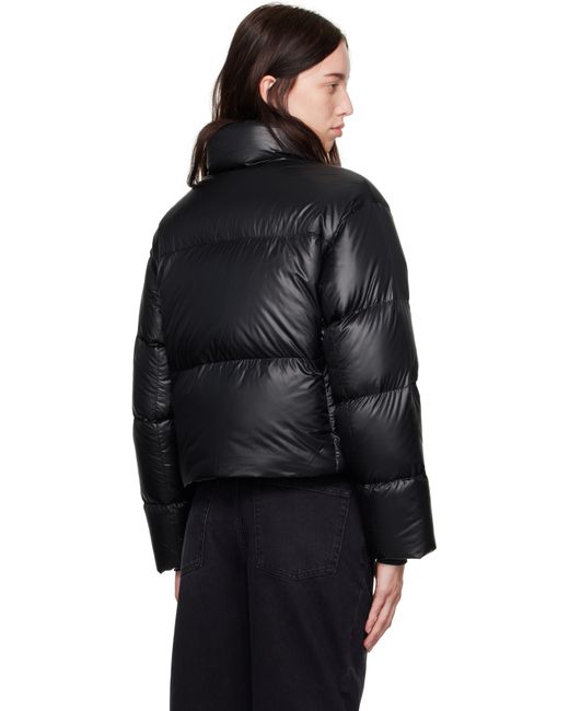 Packable down-filled and quilted recycled nylon ripstop down jacket. Lightweight, water-repellent, and wind-resistant. · Stand collar · Two-way zip closure and button placket · Seam pockets · Bungee-style drawstring at cropped hem · Dropped shoulders · Embroidered logo patch at sleeve · Rib-knit cuffs · Detachable shoulder straps at interior · Welt pocket at interior · Mesh patch pockets at interior Supplier color: Black Fill: 90% duck down, 10% down feather.