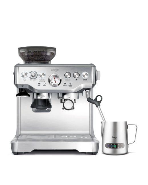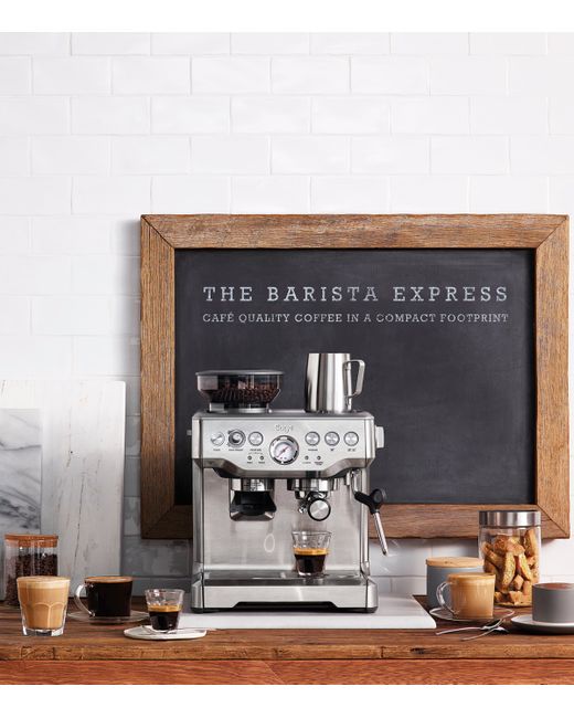 Sage brings professional-grade coffee to the home kitchen with the Barista Express Coffee Machine. Extracting the full flavour of whole coffee beans by grinding them directly into the filter, the process, from bean to coffee, takes less than a minute. Equipped with a Thermacoil heating system and powerful 15 bar pressure system, the machine offers espresso in both single and double shots, and the option to make two cups of coffee at once, while a high power milk frothing arm means you can enjoy a latte, cappuccino or flat white in the comfort of your own home. Well-appointed with a warming tray and self-cleaning feature, everything has been thought of, including the sleek, ergonomic design that will look stylish atop your kitchen counter.