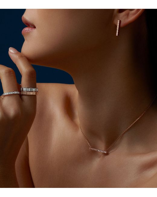 Debuted in 1999, Chopard's Ice Cube collection has always felt innately modern - a result of its sharp, squared aesthetic, inspired by tiny blocks of ice. With abundant facets and perfect geometry, this rose gold and diamond necklace catches the light in the same way that sunlight reflects off frozen water, translating this natural moment into one which plays out endlessly as part of your jewellery rotation.