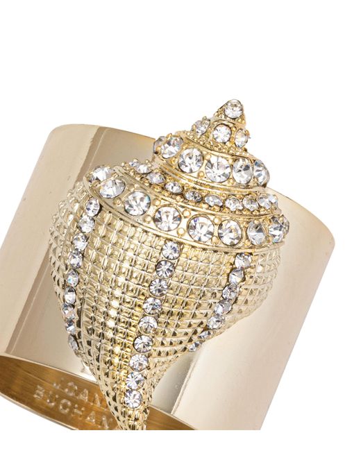 Joanna Buchanan draws on her global upbringing - as well as a family legacy of holiday decorating and collecting vintage ornaments - to create accessories for the home that are simultaneously opulent and playful, like these shell-adorned napkin rings. Set with crystals and finished with gold-tone plating, these table essentials add the perfect refined touch to seafood dinner soirées.