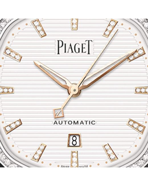 Reflecting the rule-breaking legacy of the Piaget Polo range, this timepiece updates its traditionally masculine design with new, feminine twists befitting of the modern woman. Long-time fans of the sports-inspired collection will instantly spot both its signature details - from the steel bracelet to the structured white dial crossed by horizontal lines - and the Maison's audacious addition. The latter arrives in the form of rose gold indexes adorned with diamonds, which subtly illuminate the watch and offset its athletic aesthetic.