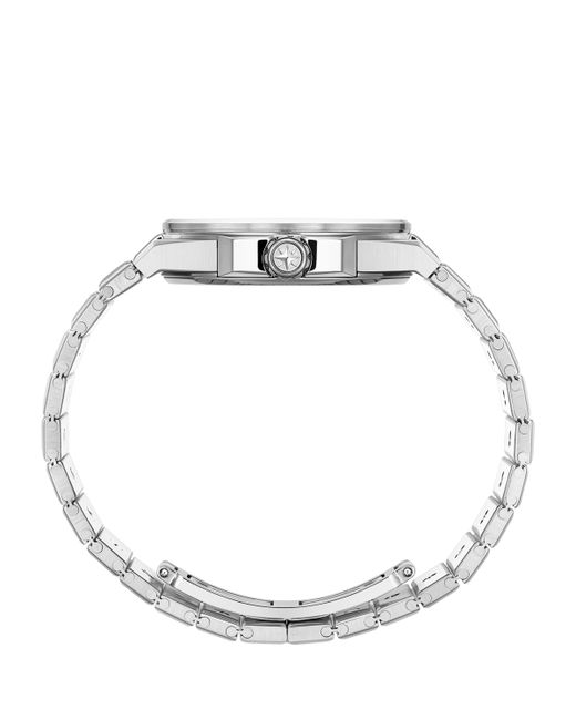 Designed by Chopard's co-president Karl-Friedrich Scheufele, the Alpine Eagle watch collection is inspired by his passion for the Alps as well as the power of the eagle. Imagined with a light-reflecting Lucent stainless steel strap, the piece is entirely crafted in the brand's watchmaking workshop, ensuring utmost quality and precision. Boasting a clear sapphire crystal dial with gold-plated Roman numerals and hour markers, it is a timeless design for the modern aesthete.