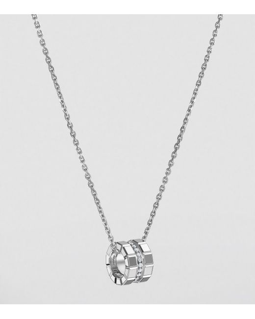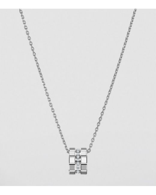 Debuted in 1999, Chopard's Ice Cube collection has always felt innately modern - a result of its sharp, squared aesthetic, inspired by tiny blocks of ice. With abundant facets and perfect geometry, this 18-karat ethical white gold and diamond necklace catches the light in the same way that sunlight reflects off frozen water, translating this natural moment into one which plays out endlessly as part of your jewellery rotation.