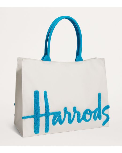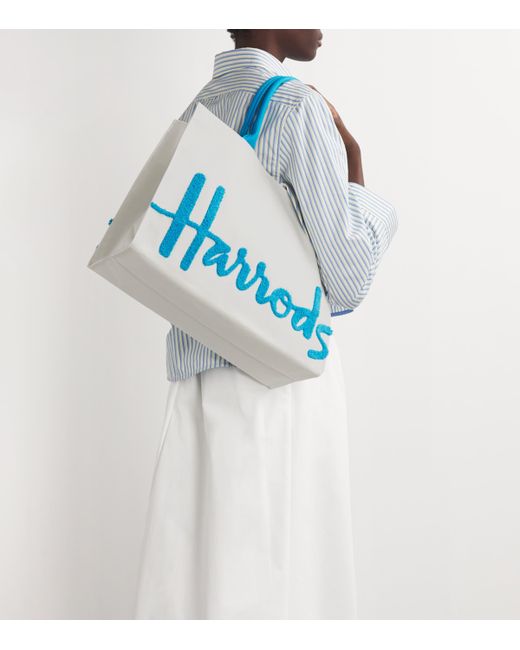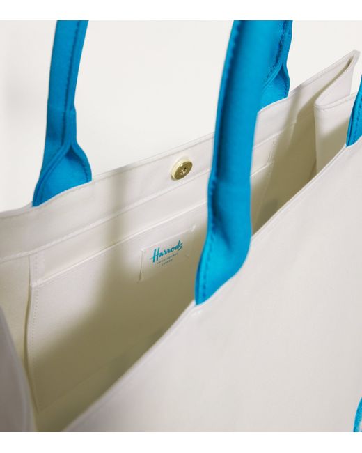 Add a burst of vibrancy to your wardrobe with this tote bag by Harrods, a go-to accessory as ideal for shopping as it is for day-to-day adventures. Crafted from cotton, it melds a smooth silhouette with a plush logo for a playful finish perfect for the creative dresser.