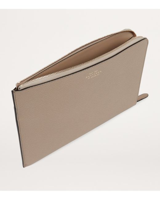 Crafted from the brand's signature Panama cross-grain calf leather, this slim pouch is a versatile everyday accessory, perfect for stashing everything from your work tablet to the day's key documents. It's detailed with the iconic Smythson stamp. Smythson is one of only seven companies to have been granted a Royal Warrant from His Majesty The King and Her Majesty The Queen, recognising its ongoing role as a supplier of goods to the Royal Family.