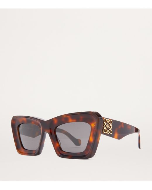 The iconic cat eye frame is reimagined through a 21st-century lens by loewe this season. The silhouette first appeared in 1920s America and was a strikingly feminine design that instantly stood out within the male-dominated sunglasses sphere; the same can certainly be said about this pair, thanks to its bevelled edges and gold-tone Anagram plaques.