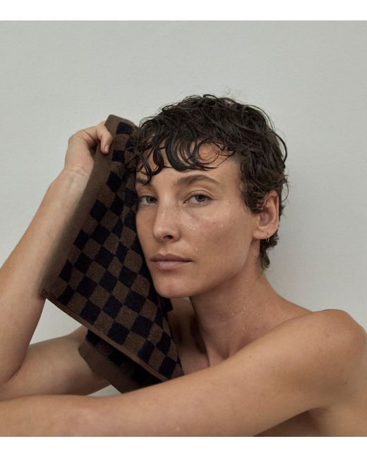 baina's contemporary towel designs lend a ceremonious detail to your daily routine, employing organic cotton and artisanal patterns informed by time-honoured colour theories. The checkerboard design shown atop the Quill facecloth is, as expected, a firm favourite among modern taste setters, bringing visual excitement to luxury beauty treatments.