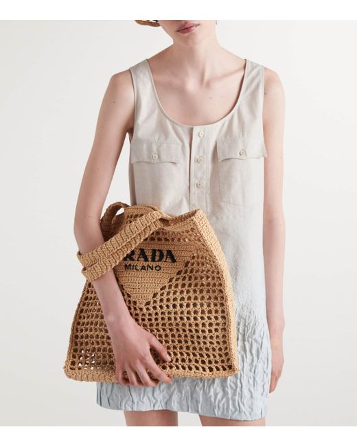 Crochet is a trend on the rise, as affirmed by the playful knitted designs of Prada's latest accessories line-up. With this tote bag, the iconic triangle logo is reimagined in a soft, deconstructed design - lending a relaxed, bohemian feel to your ensembles.