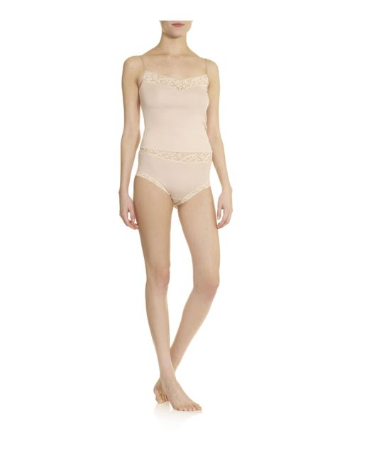 Hanro's Moments maxi brief has been crafted from super soft mercerized cotton and finished with a stunning French lace trim at the waist and legs. Featuring a high waist and low leg, this brief will deliver a smooth, flattering profile beneath clothes. Classic yet modern, they are a must-have for making your every day feel that little bit more luxurious.
