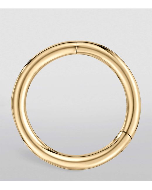 maria tash's revolution in the piercing world isn't the least surprising considering her refined approach to precious metals and stones; it's a far cry from the industrial steel we've become so familiar with. Encouraging self-expression with its extensive line of jewellery - created to be mixed and matched - the label presents pieces like this hoop earring. Its classic design, crafted from 14-karat yellow gold, offers a subtle glimmer whether worn alone or paired with many.