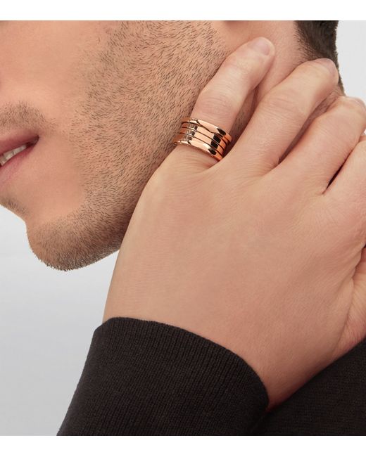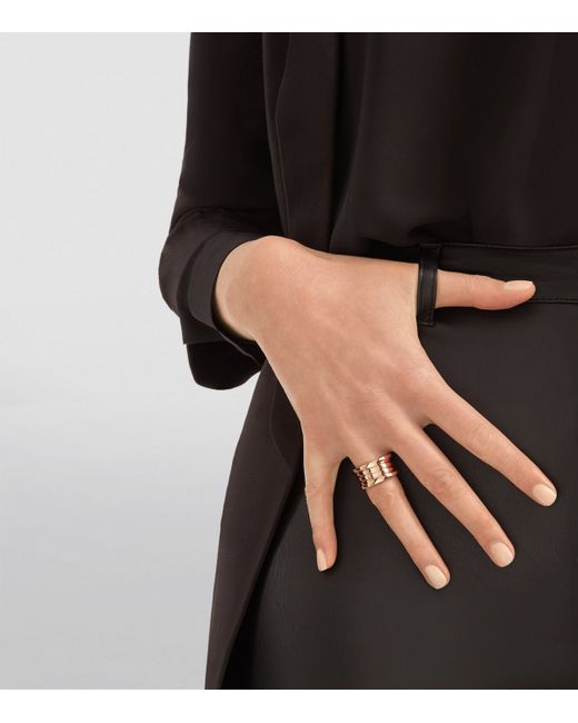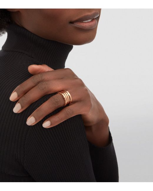 First unveiled in 1999, Bvlgari's B. zero1 ring changed the rules of jewellery design with its emphasis on shape and form. Taking Rome's famed Colosseum as its mould, this updated version features a four-band silhouette set in 18-karat rose gold, while the iconic bvlgari double logo is engraved around the edge as a mark of its Roman heritage. A true statement of Bvlgari's vision, it makes a stunning gift for a special someone.