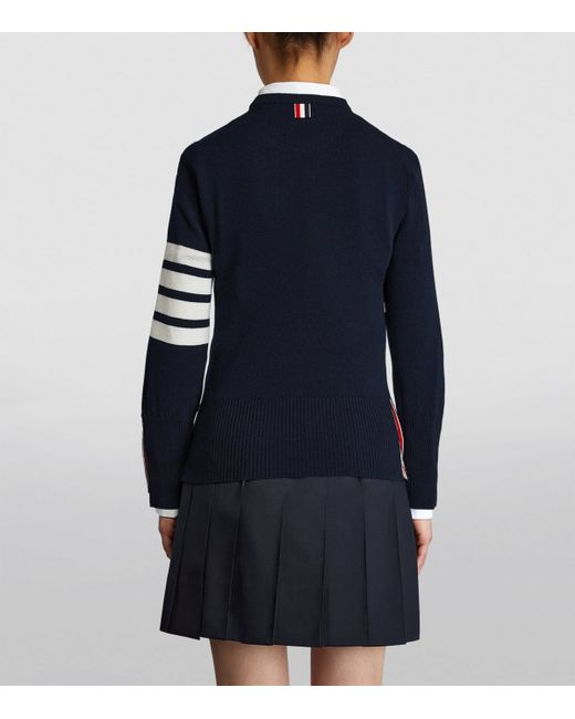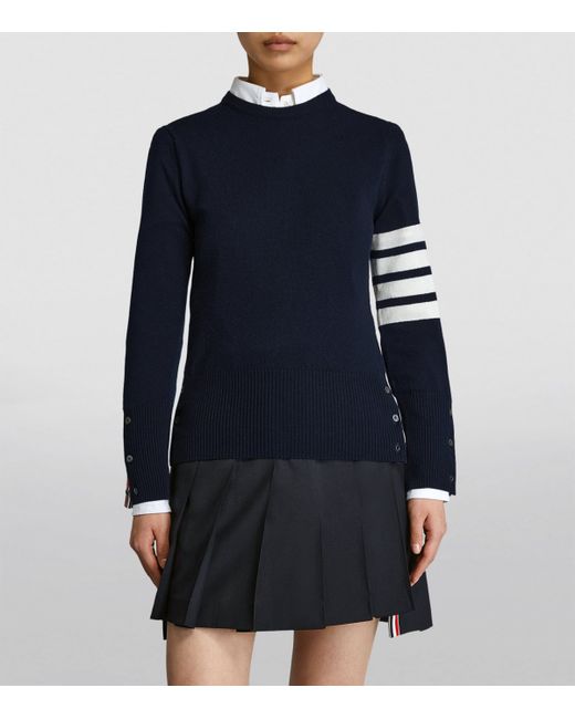 After putting old suits in the tumble dryer to try to shrink them, Thom Browne fell in love with the concept of suiting, seeing formalwear not as a rigid set of rules to be followed but as a loose concept that's destined to be deconstructed and played with. It should come as no surprise, then, that the designer's eponymous label is so well-versed in creating pieces to complement your favourite tailored separates - like this classic cashmere sweater.