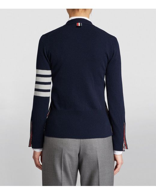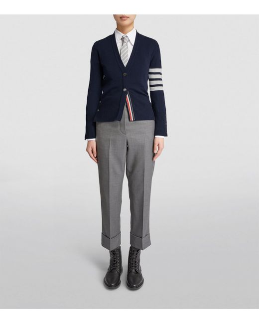 After putting old suits in the tumble dryer to try to shrink them, Thom Browne fell in love with the concept of suiting, seeing formalwear not as a rigid set of rules to be followed but as a loose concept that's destined to be deconstructed and played with. It should come as no surprise, then, that the designer's eponymous label is so well-versed in creating pieces to complement your favourite tailored separates - like this classic cashmere cardigan.
