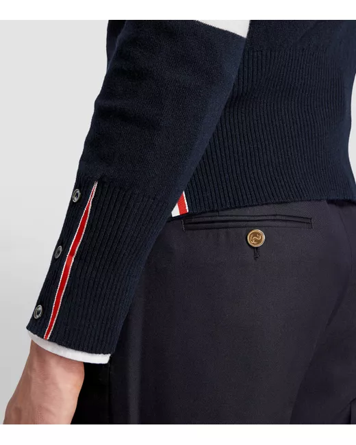 If you were looking for a piece to showcase your affinity for fine craftsmanship, exquisite materials and a famed designer, look no further than this cashmere sweater from Thom Browne. The Scottish-made garment boasts a refined silhouette that exhibits the brand's tricolour stripes in a subtle way, incorporated beneath the button fastenings at the sides.