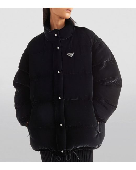 Mixing plush textures and unique shapes, Prada shows off its playful side with this chic down jacket. Not only does its soft velvet fabric perfectly complement the cosy nature of the voluminous padding, but its sleeves can be removed to convert the look into an oversized gilet.
