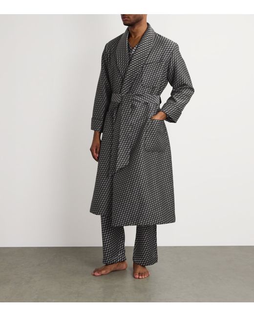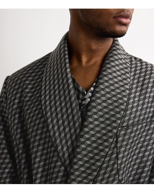 Established by Daniel and Julie Hanson in 1989, British brand Daniel Hanson has been crafting decadent robes and nightwear for Jermyn Street's elite for many years. Audacity and refinement are perfectly blended by the label, evidenced on this robe through the supple wool composition and geometric print.