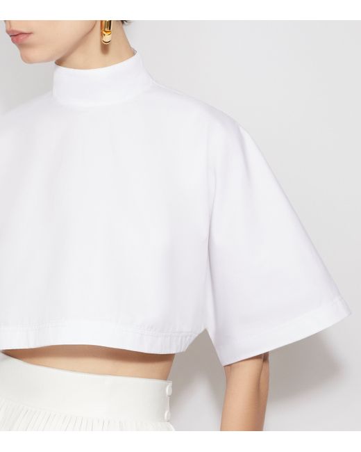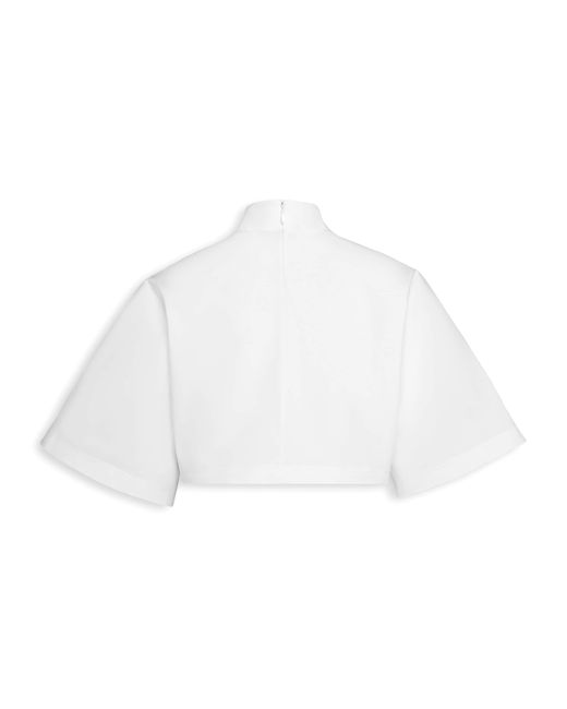 The overall design of this crop top might resemble the look of a T-shirt, but it reaches new heights once Alaïa adds its own twists to it. The classic crew neck is swapped for a high neckline, with the sleeves cut to a much wider fit. What truly highlights the excellence of its construction, however, is its composition: crisp cotton poplin to hold its shape.