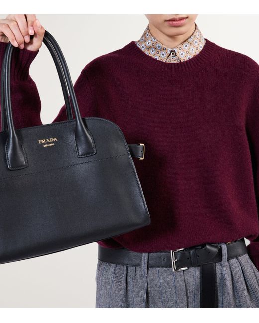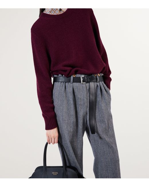 Prada takes an almost kitsch approach to its elevated aesthetics, with its signature academic sophistication shining through with pieces like this crew-neck sweater. Its simple silhouette is crafted from a soft and fuzzy blend of wool and cashmere, creating a nonchalant piece designed to be paired with sleek skirts and stilettos.