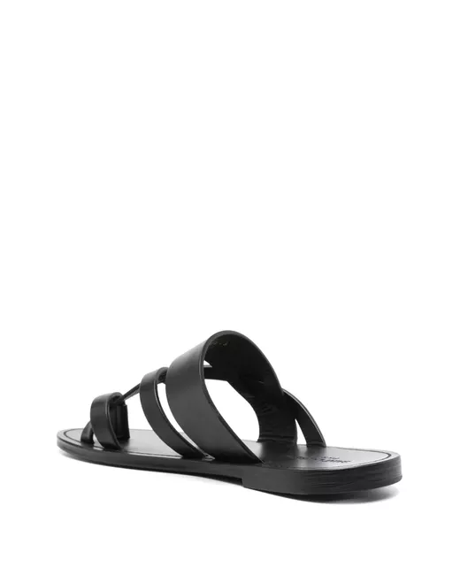 black calf leather smooth grain multi-way strap design slip-on style open toe branded footbed flat sole This piece comes complete with a protective dust bag.