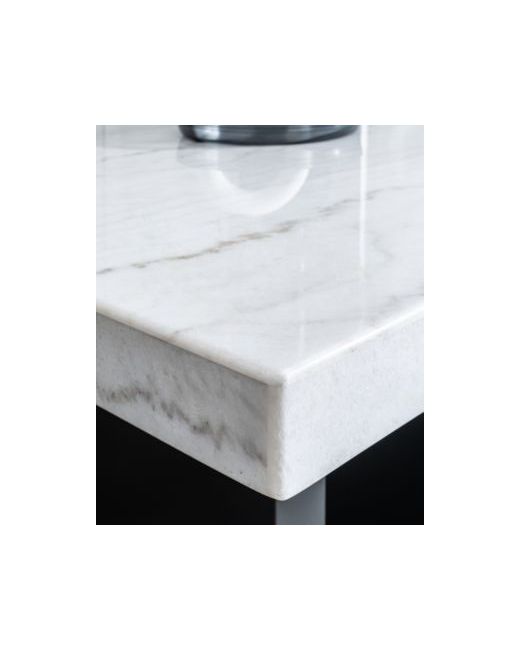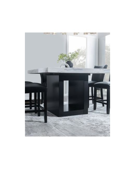 The Kellet 7 pc. Rectangular Dining Set offers a beautiful white marble veneer top with a modern ebony base. The chairs have chic wood construction with a curved back for comfort & support along with floor glides to help protect floors from scratches.