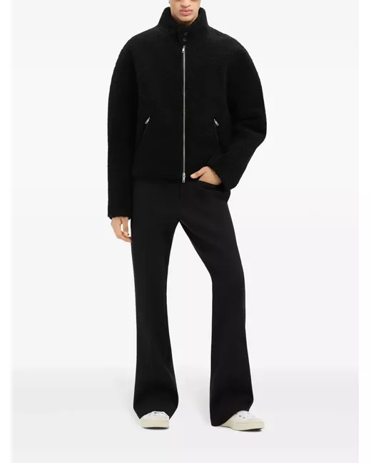 black fleece texture stand-up collar long sleeves logo patch at the chest two side zip-fastening pockets straight hem front two-way zip fastening