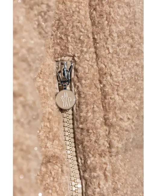 beige feather down padded design quilted concealed front zip fastening detachable hood high neck long sleeves two side zip-fastening pockets straight hem