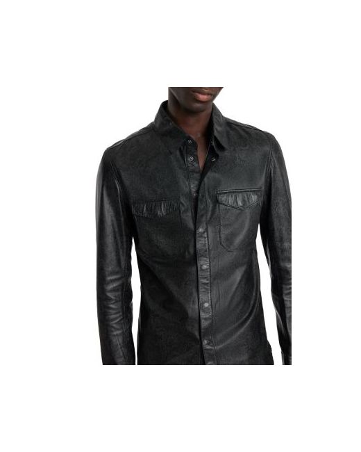 John Varvatos Travis Leather Shirt Jacket.Color:Black.Size:46.Material:Leather.Jackets.