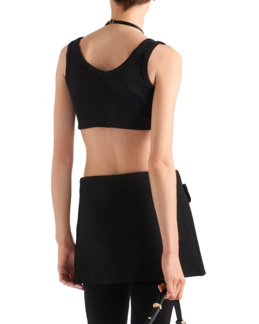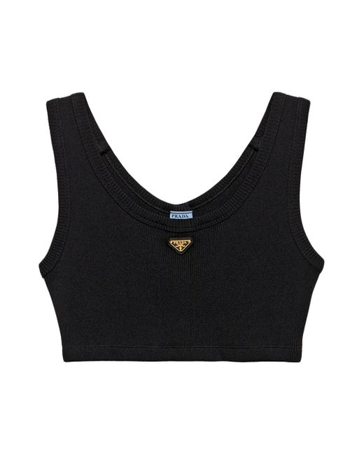 This slim-fit cropped top is made of ribbed knit jersey. The enameled metal triangle logo embellishes the sporty, contemporary design. Slim-fit silhouette Scoop neck Shoulder straps Enameled metal triangle logo Imported 2% Elastane, 12% Nylon, 86% Viscose. Lsd Rtw - Prada Rtw > Prada > Saks Fifth Avenue > Barneys. Prada. Color: Black. Size: 0.