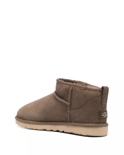 light brown calf suede pull-on style seam detailing logo patch to the rear pull-tab at the heel round toe signature UGGplush™ lining EVA midsole rubber sole