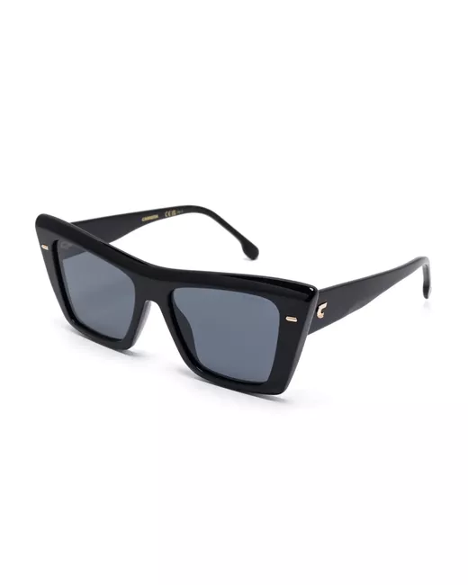 black cat-eye frame grey tinted lenses nose pads logo-embossed arm straight arms curved tips These glasses come with a protective case.