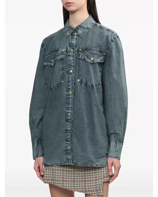 powder blue cotton washed denim front press-stud fastening classic collar two chest flap pockets long sleeves press-stud fastening cuffs curved hem