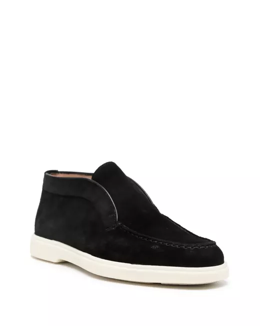 black/white calf suede almond toe slip-on style branded insole rubber sole