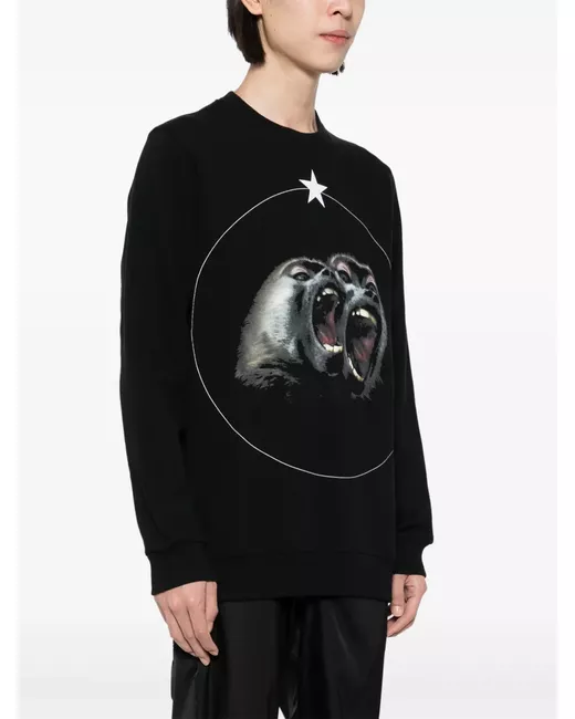 black/multicolor cotton jersey texture graphic print to the front crew neck long sleeves ribbed cuffs and hem straight hem pull-on style fleece lining