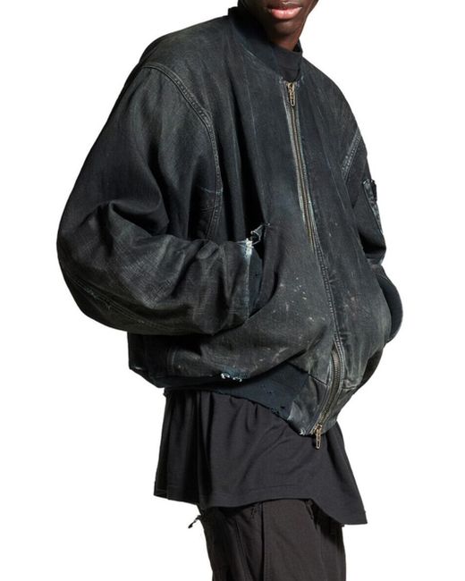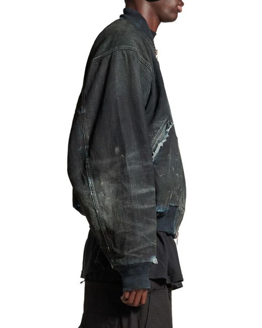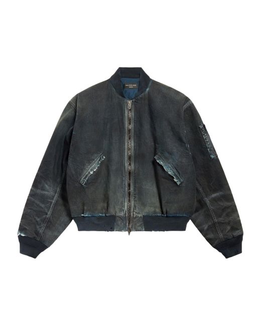 Denim Double-ended zip fastening Cargo pocket on left sleeve 2 snap flap pockets at front Ribbed trims Destroyed and washed effect Main material: 100% cotton Lining: 100% cotton Trimming: 100% cotton Padding: 60% silk, 40% polylactide Made in Italy. Lsd Rtw - Balenciaga Rtw > Balenciaga > Saks Fifth Avenue > Barneys. Balenciaga. Color: Blue. Size: Small.