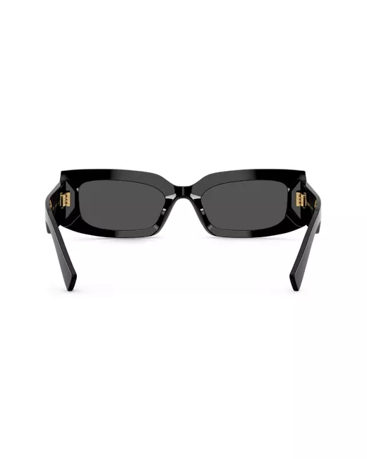 black acetate rectangle frame grey tinted lenses logo plaque at the arm straight arms curved tips These glasses come with a protective case.
