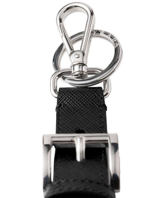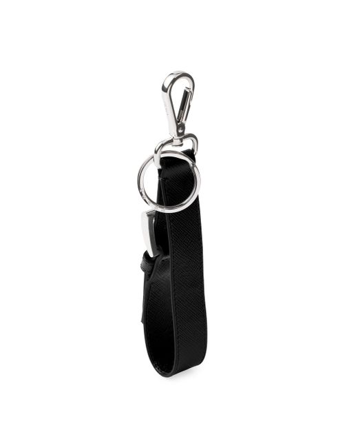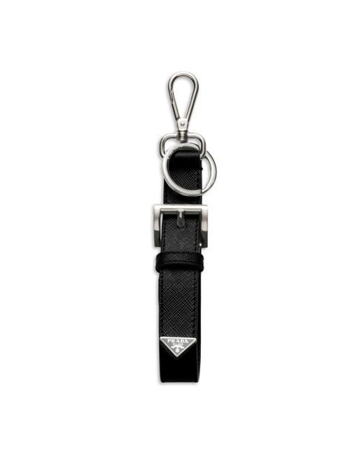The iconic geometric shape of the triangle logo embellishes this refined leather key ring with a sleek, sophisticated design. With snap hook and split ring Enameled metal triangle logo 100% steel, 100% calf leather Imported SIZE 2.0'' W x 13.5'' H. Lsd Rtw - Prada Rtw > Prada > Saks Fifth Avenue > Barneys. Prada. Color: Black.