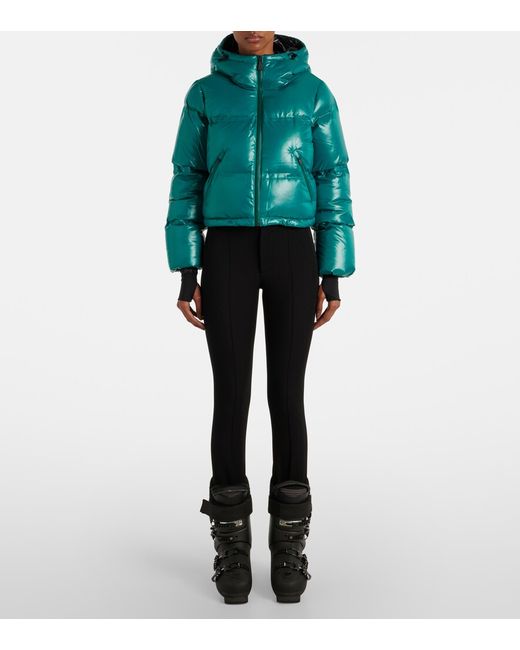 Material: 100% nylon. Care instructions: machine wash cold. Made in China. Designer color name: Grotto Teal. Closure: zipped front. Pockets: zipped pockets. Filling: 90% down, 10% feathers. Lining: 100% polyester. Fully lined. Contains non-textile parts of animal origin. Drawstring hood.