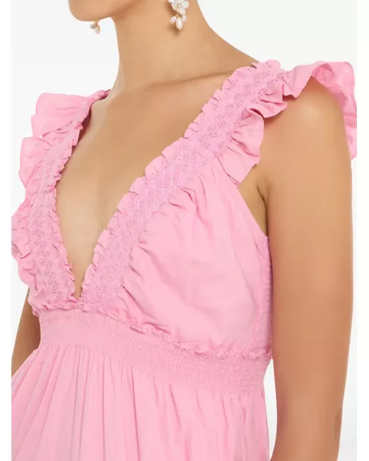 pink ruffled detailing V-neck sleeveless empire line gathered detailing flared skirt straight hem ankle-length