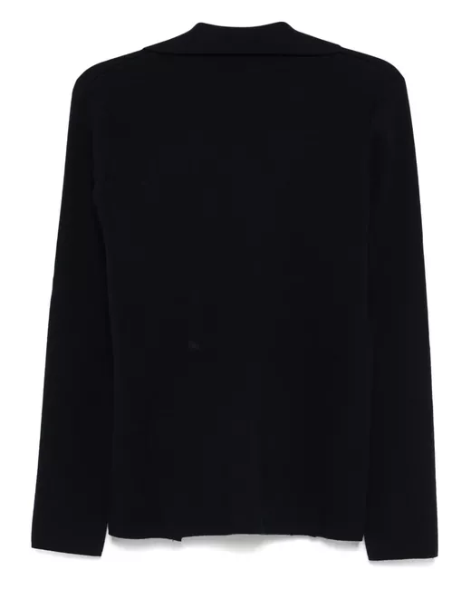 navy blue wool fine knit front button fastening notched lapels long sleeves two front patch pockets straight hem