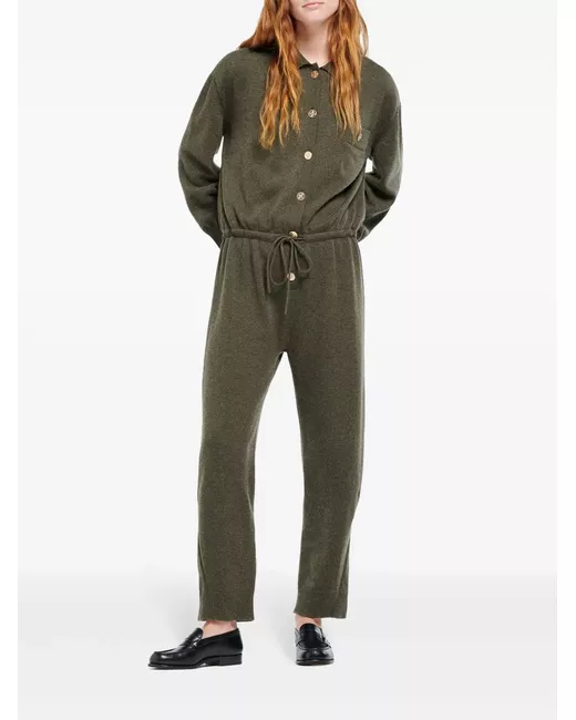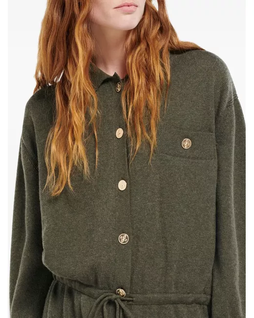 moss green cashmere knitted construction front button fastening spread collar drawstring fastening waist embossed gold-tone buttons button-fastening chest pocket drop shoulder long sleeves
