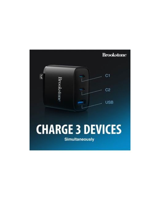 Charge 3 Devices Simultaneously at Fast Speeds with the Brookstone Pd 40W Charger. Using Power Delivery technology (Pd) Charge 3 Devices at High Speed 40W Charging, From 0 to 100% in just 30 Minutes! 2 Type-c Fast Charging Ports and 1 Usb-a Fast Charging Port. Universal Brookstone Charging Port Makes Charging Easy. Light Weight and Portable!