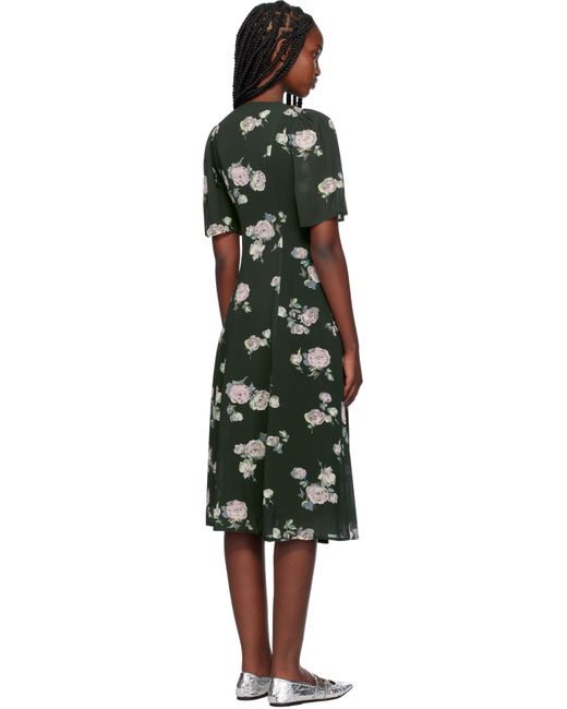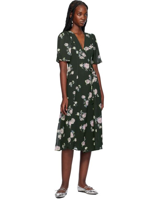 CIRCULOSE® viscose-blend crepe midi dress. Floral pattern printed throughout. · Wrap construction · V-neck · Self-tie straps at waist · Gathering at shoulders · Full crepe lining Supplier color: Climbing ivy
